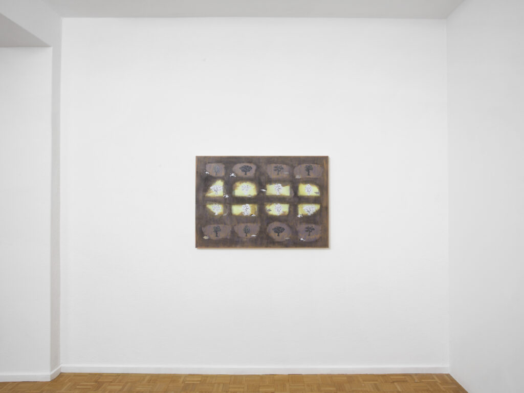 Acrylic and sealed paper on canvas, 76 x 110 cm